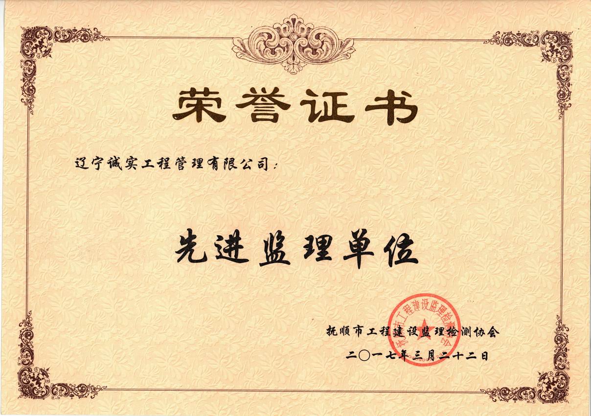2017年抚顺市先进监理单位