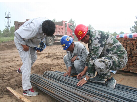 监理、业主认真检查钢筋材质、规格、型
