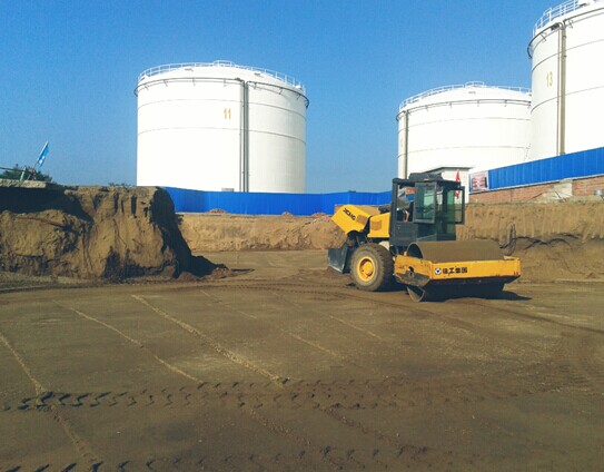 20吨压路机在工作分层碾压