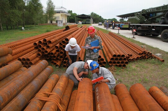 监理、业主、承包商认真检查进场管材材质、规格、壁厚